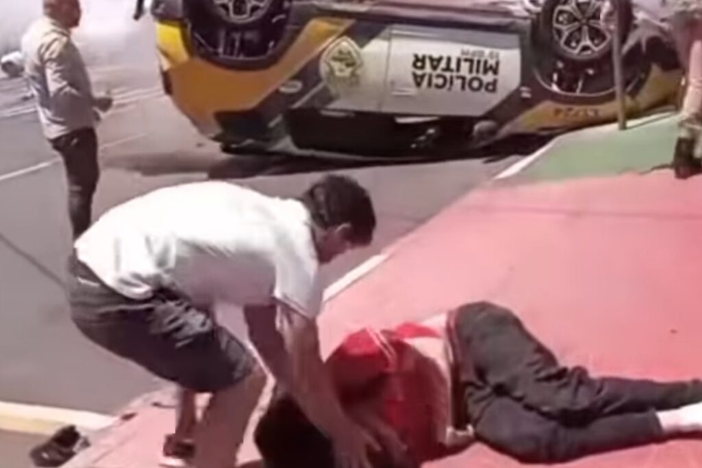 De acordo com informações apuradas no local pelo portal Toledo News, a viatura trafegava pela Rua Barbosa com o giroflex ligado, em deslocamento para atender uma ocorrência, quando colidiu contra a caminhonete. Com o impacto, o veículo policial acabou capotando e atingiu um jovem de aproximadamente 20 anos que trafegava em um patinete elétrico