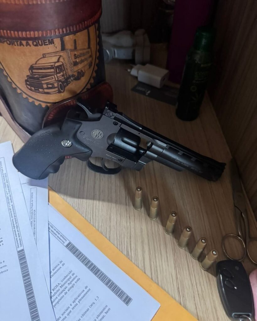 O mandado foi cumprido em Toledo, onde os policiais apreenderam o telefone celular do investigado e um simulacro de arma de fogo do tipo revólver.