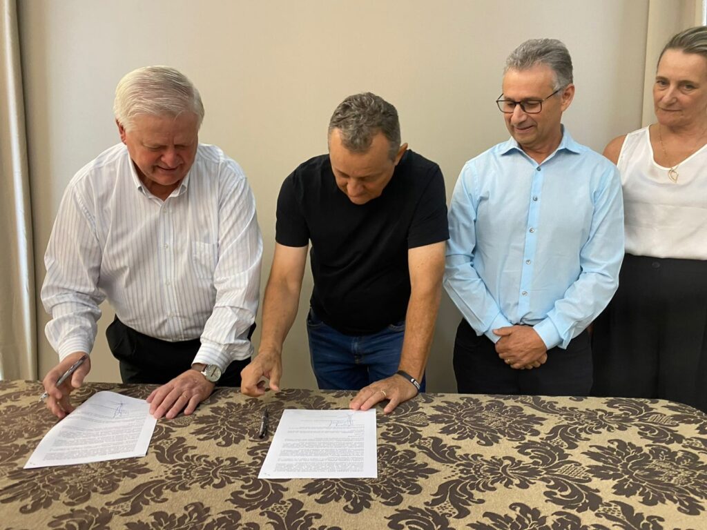 O prefeito Pedro Coelho acompanhado do Secretario de Cultura Professor Dino participou na terça-feira (24), no município de Cafelândia, da assinatura dos contratos do programa Apoio Cultural 2026, promovido pela Copacol. O ato reuniu lideranças municipais e representantes da cooperativa, reforçando o compromisso regional com investimentos nas áreas de esporte, cultura e educação.