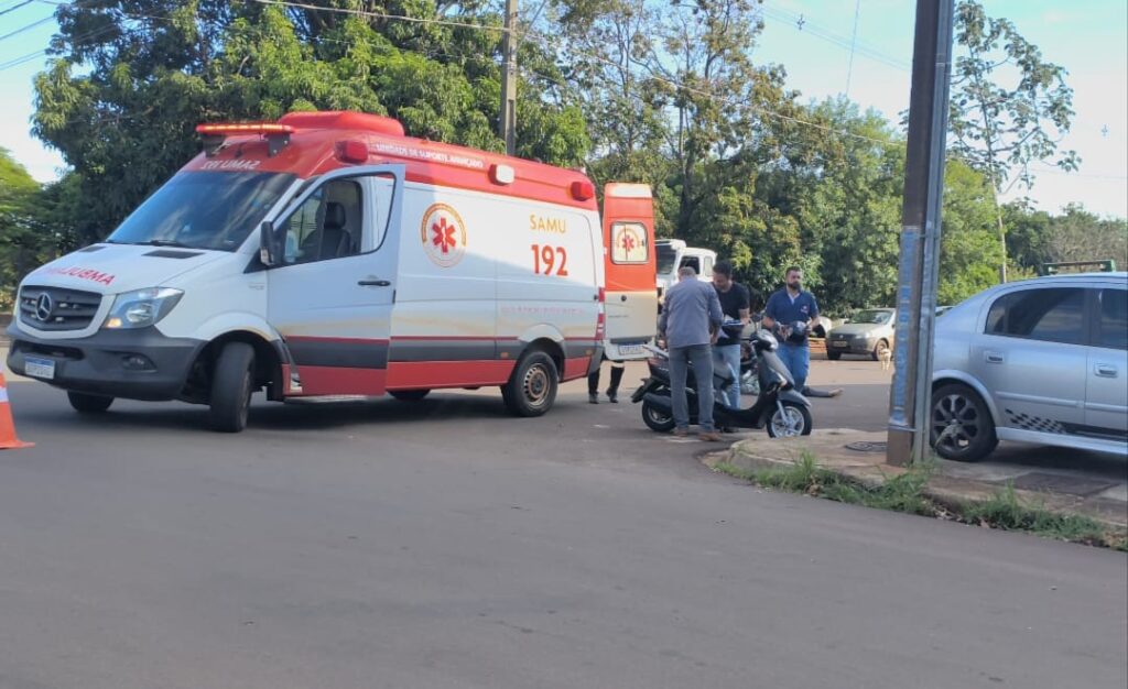 A colisão envolveu um veículo Gol e uma motocicleta. Com a batida, a condutora da moto caiu e sofreu ferimentos. O Samu foi acionado e realizou o atendimento, encaminhando a vítima para a Santa Casa. De acordo com as informações iniciais, os ferimentos foram considerados leves.
