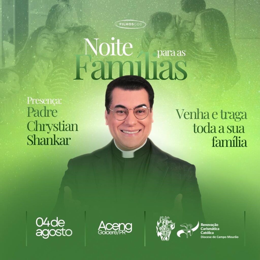 Com a presença do Padre Chrystian Shankar, você será conduzido a uma experiência profunda de fé, cura e fortalecimento dos laços familiares.